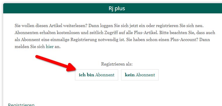 Man muss sich auf jedem Gerät und in jedem Browser einmalig mit seinen Zugangsdaten einloggen. Erst danach ist das Lesen der Plus-Meldungen nur in dem Browser des Gerätes möglich, auf dem man sich eingeloggt hat.