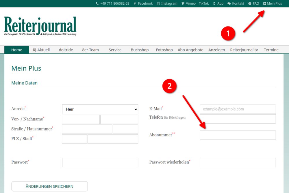 Mit einem Klick auf Mein Plus gelangen Sie in Ihren persönlichen Bereich. Dort können Sie Ihre Abonummer (s. Punkt 2) angeben. Mit einem letzten Klick auf Änderungen speichern wird Ihre Abonummer geprüft und gespeichert.