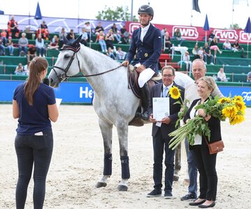 Dieses Podium kann sich mehr als sehen lassen und macht deutlich, welcher Spitzen-Sport aktuell auf den Immenhöfen der Familie Frese im Rahmen des CSI2*-Turniers geboten wird! Im Championat der Stadt Donaueschingen, einem Springen über 1,45 Meter mit Stechen, stellten die beiden Nationenpreisreiter ...