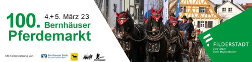 Am Samstag, 4. und Sonntag, 5. März findet nach dreijähriger Unterbrechung wieder der Bernhäuser Pferdemarkt statt. In diesem Jahr zum 100. Mal.Diese traditionsreiche Veranstaltung steht 2023 wieder ganz im Zeichen der Pferde. Am Samstagvormittag findet die Pferdeprämierung mit Wahl der Siegerzuchtstuten ...