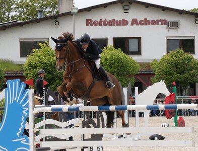 Beim großen Springturnier des Reitclubs Achern standen heute zwei S-Springen auf dem Programm. Einen 480 Meter langen Kurs mit 13 Sprüngen hatten die 16 Teilnehmer zu bewältigen, fünf von ihnen gelang dies fehlerfrei. Armin Engelhardt und sein 14-jähriger Westfale Laptop waren dabei die Schnellsten, ...