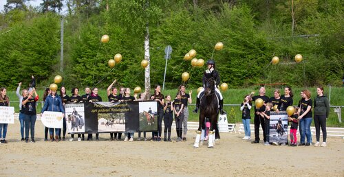Goldene Luftballons flogen in de Luft, hochgereckte Arme hinterher. Es war die richtige Stimmung zum passenden Anlass: Saskia Löwel hat am Sonntag beim Turnier in Zaisenhausen ihr Goldenes Reitabzeichen verliehen bekommen.Die junge Berufsreiterin hat die erforderlichen Erfolge innerhalb nur eines Jahres ...