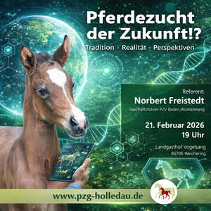 Unter dem Titel „Pferdezucht der Zukunft - Tradition – Realität – Perspektiven“ findet am Samstag, 21. Februar um 19 Uhr ein Vortrags- und Diskussionsabend mit Norbert Freistedt statt. Der Geschäftsführer des Pferdezuchtverbands Baden-Württemberg wird auf Einladung der Pferdezuchtgenossenschaft Holledau ...
