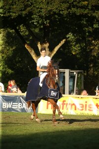 Egal ob bei Sonnenschein, bei Regen oder in der Dämmerung – man hat das Gefühl Richard Vogel würde in Warendorf auch bei dunkelster Nacht noch zum Sieg springen. Im Finale der siebenjährigen Springpferde, einem Zwei-Sterne S mit Stechen, ging er als letzter Starter in die entscheidende Runde im Stechen. ...