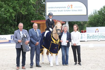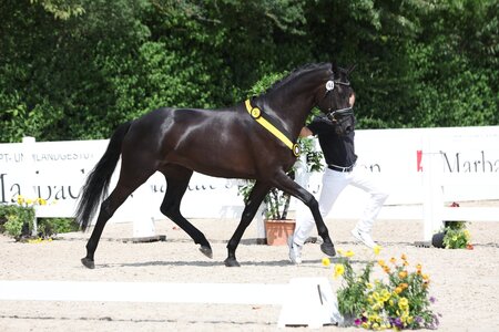 Bei den vierjährigen Stuten und Wallachen ließ sich der Sieger der Qualifikation auch den Sieg im Finale nicht nehmen und avancierte zum neuen Landeschampion. Somersby T, ein Sohn des Sir Donnerhall I aus einer L'Espoir-Mutter stammt aus der Zucht der Zuchtgemeinschaft Thanner und Kronmüller und steht ...