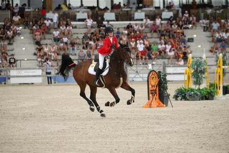 37 Grad sollen es heute in Samorin werden und die 29 Grad am Morgen, als Lilli Collee als erste Starterin für die deutschen Children bei der EM an den Start geht, fühlen sich bereits wie 35 Grad an. Doch die 14-Jährige bleibt cool. Geht den Parcours in einem ganz anderen Tempo mit Barry Brown Escaille ...