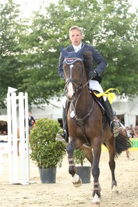 Steuert Hans-Dieter Dreher aus Eimeldingen auf seinen zweiten Meistertitel nach 2005 zu? Der in den letzten Jahren vor allem im internationalen Turniersport agierende Reiter vom Dreiländereck schaffte es heute mit gleich zwei Pferden ins Stechen und konnte mit Berlinda, einer neunjährigen Berlin-Tochter, ...