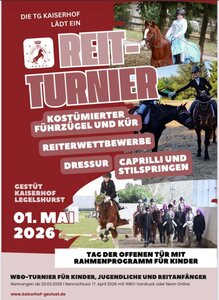 Am 1. Mai lädt der Kaiserhof in Legelshurst alle Pferdefreunde, Familien und Interessierten herzlich zum Tag der offenen Tür ein. Parallel veranstaltet die Turniergemeinschaft Kaiserhof e.V. auf dem Gestütsgelände ein breitensportliches Reitturnier und bietet Besucherinnen und Besuchern spannende Einblicke ...