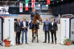 Mit seiner Stute Carella gewinnt der 24-jährige Schwarzwälder zum zweiten Mal nach 2014 den Großen Preis der „Baden-Classics“.