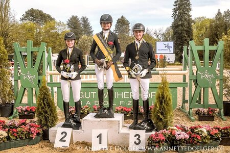 Im abschließenden Springen auf Gut Weiherhof ließ sich im CCI2*-S, dank eines fehlerfreien Ritts, die bis dahin Führende Clara Sophie Abeck im Sattel ihres 14-jährigen Donnerball-Nachkommen Don Edosto mit einem Endergebnis von 26,1 Punkten den Sieg nicht mehr nehmen. Platz zwei ging an Konstantin Harting ...