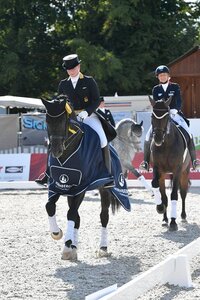 Die deutschen U25-Dressurreiterinnen haben zum dritten Mal in Folge Team-Gold bei den Europameisterschaften gewonnen. Bianca Nowag mit Fair Play RB, Juliette Piotrowski mit Sir Diamond, Jil-Marielle Becks mit Damon's Satelite sowie Lisa-Maria Klössinger mit dem Württemberger FBW Daktari aus der Kornmeyer-Zucht ...