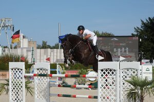 Nach Hans-Dieter Drehers Runde schien es allen ganz klar. Das musste der Sieg sein für den Eilmeldinger und den Württemberger Hengst Cachacco Blue aus der Zucht von Myriam Dickenherr im Großen Preis von Schopfheim auf Zwei-Sterne-Niveau. Am Ende wurde es Platz zwei für Dreher, der über Nacht von der Global Champions Tour-Etappe im französischen St. Tropez nach Schopfheim angereist war, denn der mit 21 Jahren blutjunge Timo Heiniger machte dem Nationenpreisreiter einen gehörigen Strich durch die Rechnung. Seinen zehnjährigen Carabatic pilotierte der gelernte Hufschmied fast fünf Sekunden schneller durch den Stechparcours von Hans Dussler. Im Anschluss freute sich der Schweizer riesig: „Ich habe Carabatic schon seit er vier Jahre alt ist. Wir haben uns langsam nach oben gearbeitet, vom ersten Sprung bis jetzt, das freut mich umso mehr.“ Hinter Dreher platzierte sich Mario Walter mit dem Württemberger Quindeur (Z.: Josef Konle) nach einem ärgerlichen Fehler im Stechen auf Rang drei. (akb)