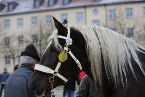 Traditionell am ersten Montag nach dem Dreikönigstag steht die Prämierung der Stuten und Gespanne beim Kalten Markt in Ellwangen auf dem Programm. 92 Stuten und 33 Gespanne stellten sich heute den Richtern. Zur Siegerstute wurde die von Klaus und Edwin Schuster (Ellwangen) gezogene, herrlich aufgemachte Salves Spes v. Sir Donnerhall I ernannt. Die Reservesiegerin der Warmblutstuten stammt aus dem Züchterhaus von Hans Engelhard und hört auf den Namen Chica v. Cantoblanco.