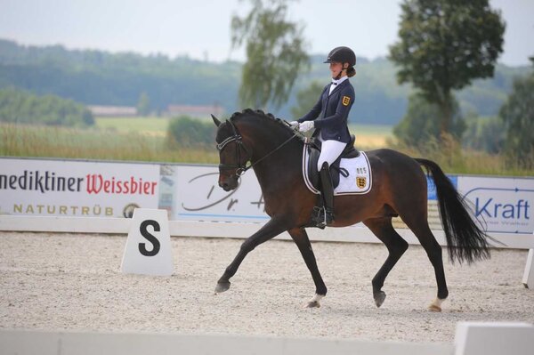 Die 14-jährige Schülerin von Michael Bühl hat den 14-jährigen Hengst erst vor wenigen Wochen von Lena Merkt übernommen. Sie siegte fein reitend in drei L-Dressuren beim Turnier-Wiedereinstieg in Rot am See, darunter in einer Wertung zum Pony-Master Baden-Württemberg und mit fast 76 Prozent der Punkte in der Kür am Sonntagabend. Das Turnier fand ohne Zuschauer unter Einhaltung strenger Corona-Regeln statt.