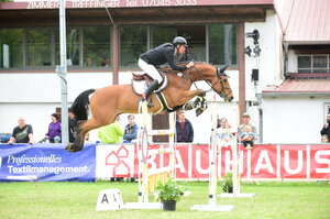 Jasmin Schaudt verwies auf ihrem Nachwuchspferd die Jettweilerin Chiara Rüsch mit Aaron, Gastgeberin Stephanie Witzemann mit ihrem vielversprechenden Nachwuchspferd Balios Primus, Ralf Müllers Bereiter Jörg Henne mit dem Rheinländer Douglas und Renate Gohr-Bimmel mit dem neunjährigen Württemberger Davvero auf die Plätze.
