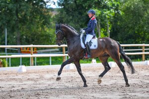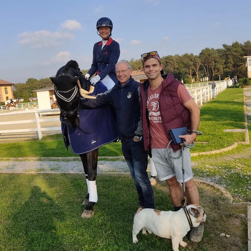 Sorrento Snörrie FBW, ehemaliger Landeschampion und Bundeschampionatsfinalist, ist unter seiner Ausbilderin Meike Lang in der Drei-Sterne-Klasse angekommen. Beim Dressurturnier im italienischen Ornago siegten Meike Lang und der jetzt zehnjährige gekörte Sohn des San Amour aus der Zucht der Familie Schuster in Ellwangen mit 71 Prozent der Punkte in der Grand Prix-Kür. Meike Lang, die sich im vergangenen Jahr am Stall Helgstrand fortgebildet hatte, hat den schicken Schwarzbraunen als Dreijährigen übernommen und bis zum Grand Prix-Sieger gefördert. In Ornago wurde Meike Lang vom Schweizer Olympiareiter Hans Staub betreut (rok/Foto: priv.)