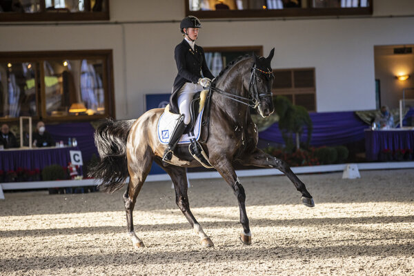 Wie schon am Vortrag kamen Lindner und ihr Erfolgspferd mit viel Energie ins Kronberger Viereck. Die Piaffen, die in der Einlaufprüfung noch Punkte kosteten, fragte die U25-Reiterin vor dem ersten Einreiten noch einmal ab. Heute sollten sie deutlich (!) besser gelingen. Neben Kleinigkeiten wie einem kurzen Stocken vor der zweiten Pirouette und leichter Spannung im starken Galopp, war Sunfires Grand Prix geprägt von Höhepunkten. Passage, Verstärkungen und herausragende Serienwechsel, die unter anderem mit Neunern im Protokoll versehen wurden, brachten ordentlich Punkte für das als Favoriten gehandelte Paar. 75,50 Prozent unterstrichen das, was Bundestrainer Sebastian Heinze schon vor dem heutigen Tag sagte: "Ann-Kathrin ist eine bärenstarke Prüfungsreiterin. Sie wird Sunfire auch gut durch seinen ersten langen Grand Prix begleiten." Nach zehn Jahren Pause, damals standen Jenny Lang und Loverboy ganz vorne, stellte Baden-Württemberg damit zum zweiten Mal die Sieger im Piaff Förder-Preis. Lindners Weg scheint weiter nicht am Ende. Ab. 1 Januar macht sie sich als Profi selbstständig. Eine wahre Bereicherung für die Ausbilder-Szene hierzulande. "Ich bin sehr glücklich und genieße einfach jeden Tag, den Sunfire bei mir ist", strahlte die Ausnahmereiterin nach der Ehrenrunde.