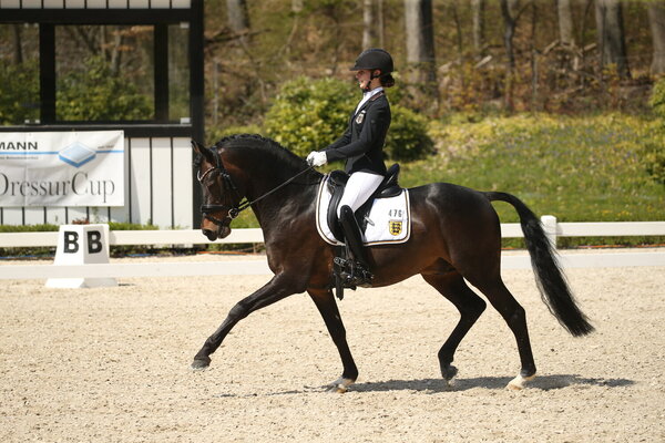 Einen deutlichen Sprung nach vorne machte die Newcomerin Clara Kohoutek mit schönem Reiten auf Claire. 70,500 Prozent in der Kür waren der Lohn, Platz vier und ein siebter Platz in der Gesamtwertung für das elfjährige Küken.