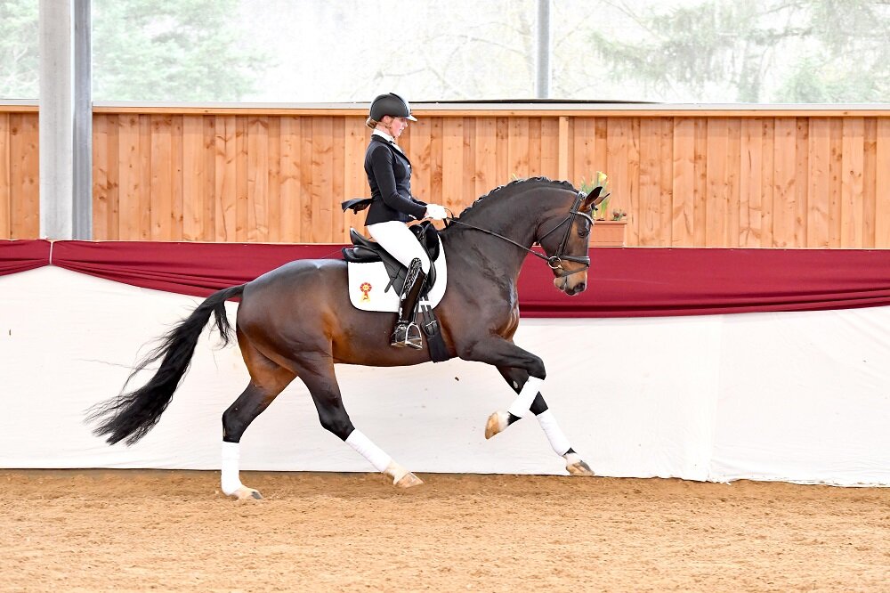 Er stand bereits anlässlich seiner Körung beim Schaufenster der Besten als Siegerhengst an der Spitze des Feldes: DSP Alpha Royal. Der Sohn des Antango aus einer Mutter von Fidertanz avancierte heute zur Preisspitze der DSP-Online-Reitpferde & Youngster-Auktion mit 93.000 Euro. Mit drei überragenden Grundgangarten, bei seinem Aussteller dem Dressurstall Lenders Gbr, Bad Zwischenahn und der Hengststation Ahlers bereits bis zur Klasse M gefördert, steht der sechsjährige Hengst aus der Zucht von Familie Schadock zum Losreiten für höhere Aufgaben bereit. Seine neue Besitzerin ist eine Pferdeliebhaberin die im Allgäu zu Hause ist. Durch mehrfache Championatserfolge wurde Alpha Royal bereits mit dem begehrten DSP Präfix ausgezeichnet.