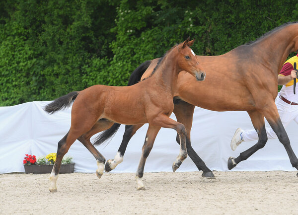 Die zweite Auflage der Online-Auktion Parcours Pur endete am 6. Juli 2021 erfolgreich für die Deutschen Sportpferdezüchter: Die Preisspitze ist Eldor, der Sohn des Eldorado van de Zeshoek aus einer sporterfolgreichen Mutter von Chin Champ – ein Strahlemann vom Scheitel bis zur Sohle. Top-Genetik, dahinter ein sehr guter Mutterstamm mit einer Großzahl an Pferden mit Erfolgen über 1.60m, schöne Bewegungen und das alles gepaart mit viel Typ. Das Züchterhaus Günther Hahn und Marlies Schleicher aus Riesbürg in Bayern wusste nicht erst nach der Fohlenschau in Zöbingen als kein geringerer als Josef Weishaupt den Braunen beurteilte, was sie im Stall haben. Ein ambitionierter Springstall aus Hessen hatte den längsten Atem und erhielt den Zuschlag bei 20.000 Euro.