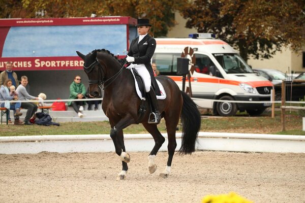 Von Tokio auf die Schwäbische Alb. Beim Dressurturnier auf dem Haupt- und Landgestüt in Marbach hat sich kurzfristig die frischgebackene Mannschafts-Olympiasiegerin Dorothee Schneider angesagt. Das hat Marbachs Turnierleiter Frank Reutter bestätigt. Die Framersheimerin braucht offenbar keine Pause nach Olympia. Sie wird in der Dressurpferde-M den holländischen Hengst Khalifa reiten und den früheren baden-württembergischen Landeschampion und Burg-Pokal-Sieger First Romance in der Drei-Sterne-Tour (rok/Foto: Doris Matthaes).