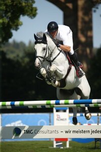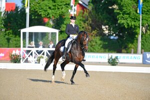 Die erste S-Dressur von Königsbach wurde zu einem spannenden Erlebnis, weil man darin einige sehr vielversprechende Nachwuchspferde sehen konnte: allen voran den kapitalen Rappwallach Fürstana unter Julia Kühn und den gummiballartigen Dantes Zazon unter Landesmeister Timo Kemmerer aus eigener Zucht. Beide Pferde , erst sieben Jahre jung, platzierten sich und zogen die Blicke der Kenner auf sich - lösten aber auch beim Richtergremium Diskussionen aus und schieden dort die Geister.