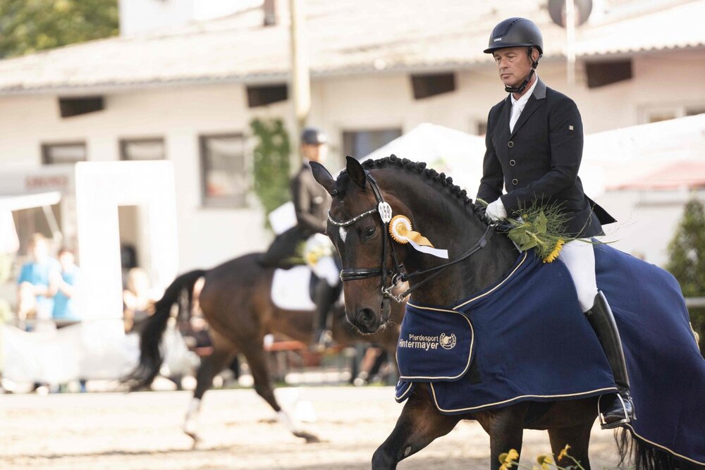 Er ist einer der solidesten Ausbilder des Landes, aber nicht unbedingt ein Siegreiter. Aber jetzt hat Andreas Platzdasch wieder einmal eine Goldene Schleife in einer S-Dressur geholt, das war am Sonntagmittag bei einer liebevollen Dressurturnierpremiere in Königsbach im Enzkreis. Andreas Platzdasch (54), Ausbilder in Renningen bei Stuttgart, sicherte sich im Sattel des durchlässigen Wallachs Rookie, einem Pferd seiner Schülerin Jaqcueline Stoffel die Prüfung mit 69,3 Prozent der Punkte vor Andrea Dluigos mit Fidenzia und Simone Kinzinger vom Hammberger Hof mit Fürstin Feenstaub.