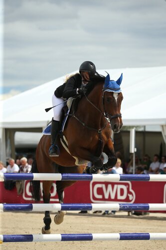 Mit dem Sieg im Zwei-Sterne-S vom Samstagabend auf ihrem elfjährigen Lord Z-Sohn Lucky, bei dem sie Rossen Raytchev mit Cyriac und Adrian Schmid mit Deva vom Schlösslihof auf die Plätze verwies, machte die 28-jährige Profi-Quereinsteigerin das Goldene Reitabzeichen komplett, wie LK-Geschäftsführerin Miriam Abel schnell nachrechnen konnte. Vor allem gute vordere Platzierungen in Zwei-Sterne-Springen ergänzten die sechs S-Siege.