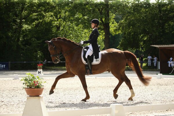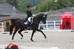 Bei den Nordbadischen Meisterschaften in Reilingen lieferte sie zwei Runden mit über 70 Prozent der Punkte ab, am Sonntag fast 73 Prozent. Dabei war das Feld stark besetzt: Auch auf den weiteren Podiumsplätzen landeten formstarke Profi-Reiterinnen: Simone Kinzinger von Hammberger Hof bei Sinsheim auf Fürstin Feenstaub und der frisch gebackenen Süddeutschen Berufsreiter-Meisterin Ann-Kathrin Lachemann auf Della Cara.