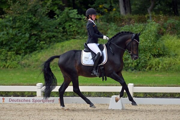 Das Marlene Binder und DSP De Long zur nationalen Pony-Spitze gehören ist keine Neuigkeit. Schließlich wurde das Duo vom Badhof in Bad Boll erst im Juli in den Bundeskader NK 1 nach einer starken Saison berufen, unter anderem wegen herausragender Erfolge auf internationaler Ebene wie bei den Future Champions in Hagen. Auch bei den Deutschen Jugend Meisterschaften in Kranichstein bewiesen Marlene Binder und der 15-jährige „Knirpsi“ nun erneut ihr Können. Nach Platz fünf und acht in den ersten beiden Wertungsprüfungen, legten die Schützlinge von Michael Bühl zum Abschluss in der finalen Kür nochmal einen drauf. Die Jury bewertete die Kür von Baden-Württembergs amtierenden Landesmeistern mit 75,600 Prozent, was Rang vier in dieser Prüfung und Rang sechs im Endranking der Meisterschaften bedeutete. Einen Start-Ziel-Sieg fuhr Rose Oatley ein. Mit Daddy Moon hatte die amtierende Triple-Europameisterin alle drei Wertungsprüfungen überlegen für sich entschieden. Die Goldmedaille war mehr als verdient. Silber ging an die frischgebackenen rheinischen Meister Maleen Kohnle und Dabia Dior, Antonia Busch-Kuffner trabte auf Kastanienhof Cockney Cracker zu Bronze.