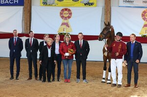 Aus baden-württembergischer Sicht hätte es kaum besser laufen können. Zum Siegerhengst wurde der formschöne, aus dem Zuchtgebiet stammende Sohn des Casino Grande-Havana Club ernannt! Der Braune stammt aus der Zucht von Antonius Schulze-Averdiek, in dessen Besitz er auch steht. Schulze-Averdiek ist treuer Beschicker der DSP-Hengsttage und wurde für seine züchterischen Erfolge vom AGS-Vorsitzenden Carsten Grill mit der FN-Plakette in Gold ausgezeichnet. Sportkommissar Andy Witzemann kam bei der Beschreibung des Siegerhengstes regelrecht ins Schwärmen. Der Casino Grande-Sohn sei ein Hengst, der alles mitbringt was sich das Springreiterherz wünscht. Er überzeugte die Kommission mit seinem hervorragenden Typ, toller Balance, bestem Interieur und schier grenzenlosen Vermögen. Witzemann betonte: „Eigentlich gibt es hier nichts zu verbessern!“