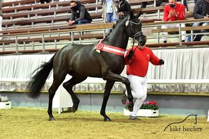 Neben den Körentscheidungen, wurde heute einem weiteren Hengst eine besondere Ehre zuteil. Nachdem die German Masters auch letzten Herbst Corona-bedingt ausfallen mussten, wurde heute die Ehrung des Masters Hengst vorgenommen. Neuer Masters Hengst ist der Weltklasse-Vererber der Hengststation Bachl: Vingino v. Voltaire-Cassini I (Z.: J. Albers)! Selbst sportlich hocherfolgreich, stehen ihm seine zahlreichen Nachkommen kaum in etwas nach. Vorgestellt wurde Vingino in München von der erst 14-jährigen Emma Bachl.