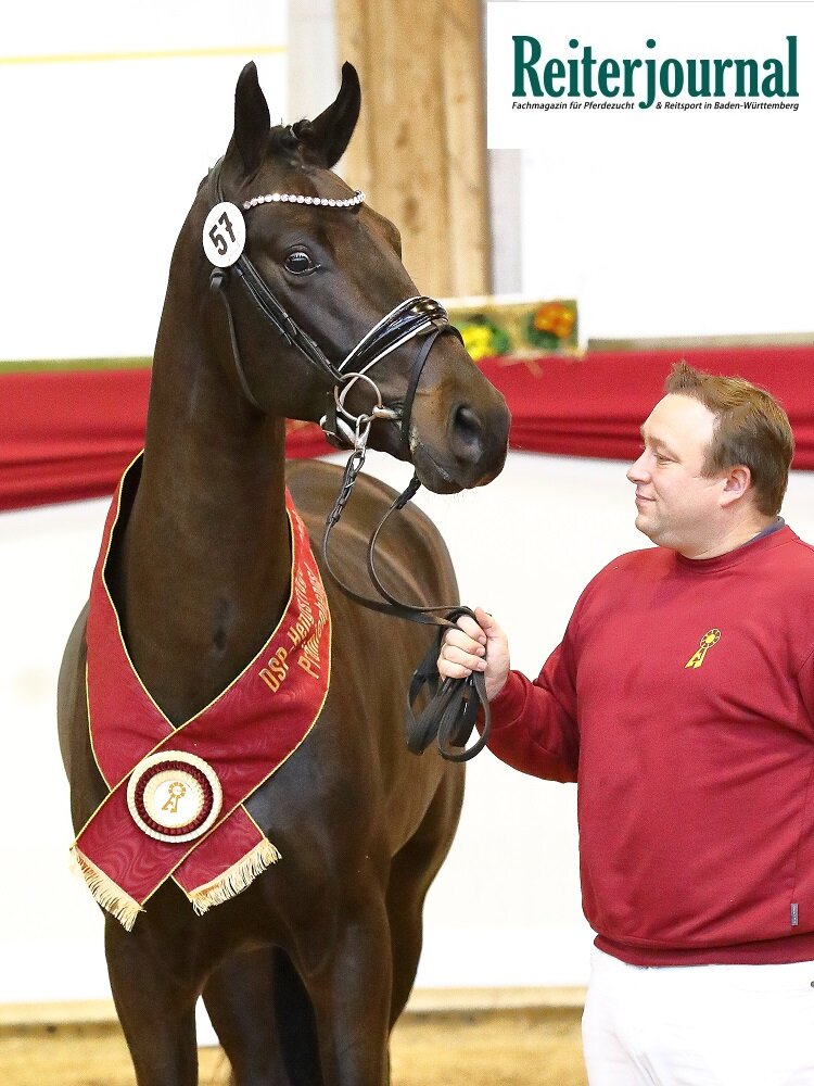 Neben dem Sieger wurden sieben weitere Hengste prämiert, darunter drei aus dem baden-württembergischen Lot. Hier imponierte zunächst der in Baden-Württemberg gezogene Sohn des Fair Game-Sandro Hit aus der Zucht von Ernst Rus, ausgestellt durch die Xenophon 2 GmbH. Schrödter beschrieb den Hengst als perfekte Mischung des Vaters und Muttervaters. Ein vielversprechendes, top modelliertes Dressurpferd, mit viel Ausdruck.
