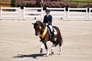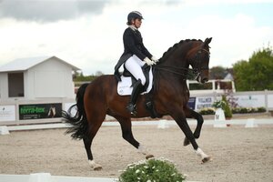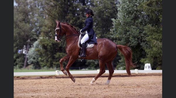Die Qualität war ihm früh anzusehen, jetzt ist der Württemberger Fuchswallach Bugatti C im Alter von zwölf Jahren, um Drei-Sterne-Bereich angekommen. Unter seiner Reiterin und Ausbilderin Andrea Caesar-Vetter platzierte sich der stämmige Fuchswallach aus eigener Zucht (von Bentley/Risanto) beim Turnier im westfälischen Hamminkeln in zwei Drei-Sterne-Prüfungen jeweils mit einem Ergebnis von über 68 Prozent. Andrea Caesar-Vetter aus Schwanau in der Ortenau hat den Fuchswallach als Amateurin als selbst ausgebildet und gefördert. In jüngster Zeit holt sie sich Tipps von Reitmeister Karl-Heinz Streng (rok/Foto: privat).