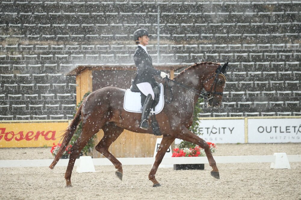 Dicht dahinter, nur mit einem halben Punkt weniger als Schmid, folgte der Sulminger Joachim Giersch mit FBW Lady Darcy. Die Beiden zeigen in den letzten Wochen konstante Runden und platzieren sich in jeder Prüfung. Anjana Maureen Bucher rangierte mit ihrem langjährigen Erfolgspferd Armani auf dem dritten Platz. Die letztjährige IWEST-Cup-Finalistin erhielt heute 68,7 Prozent. Nicole Kohler mit Sierra und Corinna Peter gehörten ebenso zu den Platzierten. (mb)