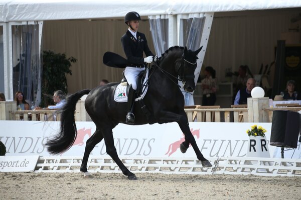 Auch ohne Landeskader gehört Moritz Treffinger zu den besten Dressurjunioren des Landes: Am Freitag siegte der 18-jährige frühere Pony-Europameister in der "S3" im Sattel seines neunjährgen selbst ausgebildeten Oldenburgers Superstition vor den routinierten Profis Thomas Wagner mit Escolars Emil (erst sieben Jahre alt) und Renate Gohr-Bimmel, die im Sattel des achtjährigen Lausanne eine sehr engagierte Vorstellung ablieferte. Weitere Platzierte in der interessanten Jungpferdeprüfung waren Saskia Löwel aus Wiesloch auf der Schweizer Stute Prima Ballerina live und Anna Casper auf dem erst siebenjährigen früheren Landeschampion Zimtstern von Zalando in seiner ersten S-Dressur überhaupt (rok/Foto: Matthaes).