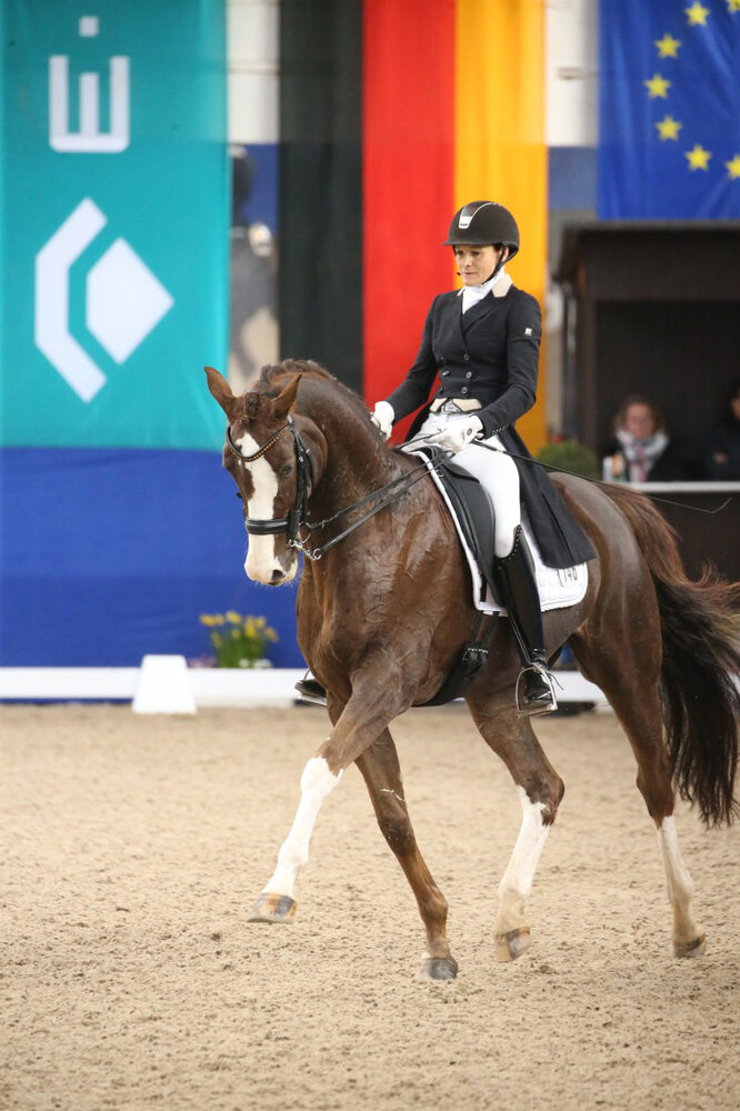 90 Punkte Abstand vor dem Zweitplatzierten! Das findet man selten. In Pforzheim ist so eindeutig am Sonntag der Grand Prix zum Abschluss der Pforzheimer Dressurtage zu Ende gegangen. Wieder stand Landesmeisterin Jasmin Schaudt vorne, diesmal wieder mit dem zwölfjährigen und mittlerweile gereiften Fuchswallach Fano. Die Jury vergab 74,3 Prozent der Punkte. Das waren tatsächlich 90 Einzelpunkte mehr als Thomas Wagner aus Hessen mit seinem Soul Men bekam. Sein Prozentergebnis von 71,4 Prozent verrät aber durchaus eine saubere Runde. Ann-Kathrin Lachemann, frisch mit dem Goldenen Reitabzeichen dekoriert, belegte mit ihrem Fransje und 69,7 Prozent Rang drei vor Janina Kahl mit Emilio (67,9 Prozent).