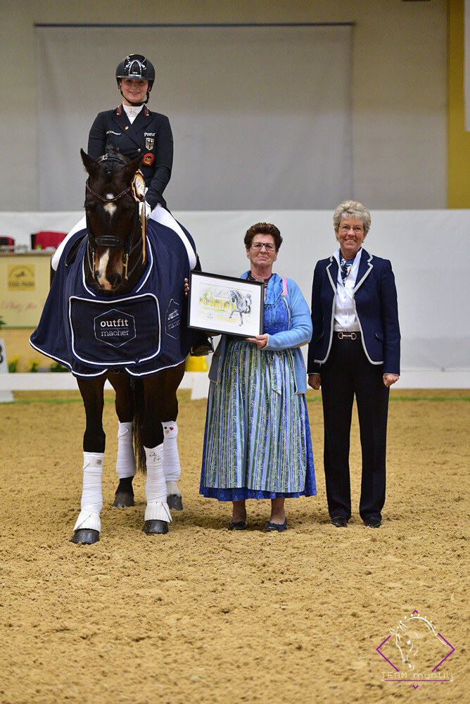 An diesem Osterwochenende findet im österreichischen Pferdezentrum Stadl-Paura ein internationales Dressurturnier der Extraklasse statt. Ein gutes Pflaster besonders für Jana Schrödter, die hier in der Jungen Reiter-Tour die deutschen, und auch die Farben Baden-Württembergs vertritt. Nach Platz drei in der Mannschaftsaufgabe konnte sich Jana Schrödter mit Der Erbe OLD in der Einzelaufgabe nochmals deutlich steigern. Mit 72,353 Prozent setzte sich die Berufsreitertochter von Trainer Jörg Schrödter überlegen an die Spitze. Lediglich einen kleiner Patzer in der Wechseltour mussten die Richter der Leipheimerin, die nach ihrem Praktikum bei Helgstrand Dressage wieder an den heimischen Stall zurückgekehrt ist, ankreiden. Die Krönung des Wochenendes folgte in der finalen Kür an diesem Ostersamstag. Mit bärenstarken 75,867 Prozent gewinnt Schrödter auch diese Prüfung im Sattel ihres Oldenburger Dimaggio-Nachkommen. (akb)