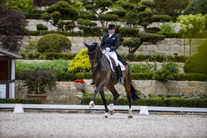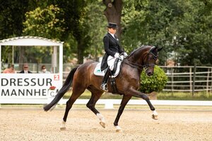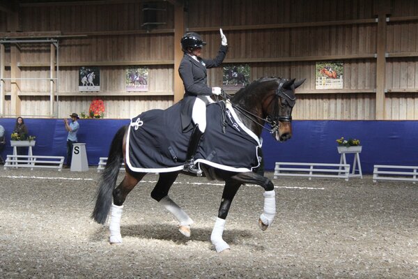 Es war großartiger Sport und ein großer emotionaler Moment, als Olympiasiegerin Dorothee Schneider am Finaltag des Zeuterner Dressurfestivals im Sattel des Württemberger Wallach First Romance mit fast 78 Prozent der Punkte am Ostermontag den Grand Prix gewann - an jenem Ort, an dem der  gelenkige Braune von Pieter van der Raadt ausgebildet und als Vierjähriger zum Titel des Landeschampions gefördert wurde. Dorothee Schneider präsentierte den schicken Dunkelbraunen gereift und losgelassen mit großen Höhepunkten in den Piaffen und Passagen. In der Halle konnte man eine Stecknadel fallen hören.