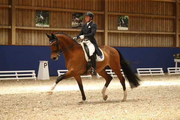 Zu Gast im Ländle: so ganz trifft das auf die gebürtige Baden-Württembergerin Myriam Anhalt nicht zu. Doch die routinierte Profireiterin ist schon seit einiger Zeit Betriebsleiterin im Dressurzentrum in Grab (Schweiz). Zuvor war sie jahrelange Bereiterin im Stall Fritzsching in Kirchzarten. Heute konnte Anhalt mit dem elfjährigen Wallach Rocco Granata die S-Dressur beim Dressurturnier in Konstanz gewinnen. Myriam Anhalt stellte Rocco Granata Anfang dieses Jahres erstmals auf dem Turnier vor. Der Wallach verfügt schon über internationale S-Erfolge mit Lena Stegemann und Susann Pape. Heute überzeugte das Paar besonders in der Galopptour. Auf Platz zwei folgten die gestrigen Sieger der M**, Felicitas Beck und Faido. Das Paar sorgte schon im letzten Jahr für einige Überraschungen in Nachwuchsprüfungen und sicherte sich heute den zweiten Platz mit 68,9 Prozent. Nach einer starken Trabtour verlor Beck besonders in den Galopppirouetten wertvolle Punkte, die dann auch den Sieg kosteten. Auf dem dritten Platz landete Anna Gunst und ihr Despino. Gunst und Despino befinden sich in einer konstanten Form und reiten von Platzierung zu Platzierung. Genauso macht das auch die Junge Reiterin Leonie Moll und ihr Equidiamonds Bright Bellini. Sie durfte sich heute nicht nur über die blaue Schleife, sondern ebenso über 68,0 Prozent freuen. Auf dem fünften Platz rangierte Chiara Rüesch und ihr Erfolgspferd Aron. Zu den weiteren Platzierten zählten Myriam Anhalt mit Rock Forever, Lisa Astfalck mit Bruno Banani, Maren Schatz mit dem konstanter werdenden Sacramento sowie Nicole Kohler mit Sierra. (mb)