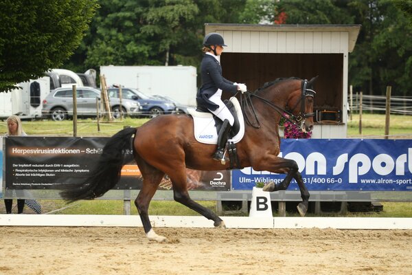Seit 2017 ist der zwölfjährige Wallach Quodam unter dem Sattel von Miriam Maurer. Sie stellt ihn schon in Dressurpferde-Prüfungen vor. Es folgten Siege und Platzierungen in M Dressuren. Nach einem dritten Platz in einer S Dressur in Darmstadt Kranichstein konnte das Paar den Bietigheimer Turnierhöhepunkt, einer S-Dressur mit einem Stern, für sich entscheiden. Das Paar zeigte eine ausdrucksstarke Trabtour mit Höhepunkten in den Traversalen. In der Galopptour punkteten sie v.a. in den Serienwechseln. Am Ende siegten die Beiden mit 69,9 Prozent. Gabriele Matthes und ihre Nachwuchshoffnung Escostar rangierten punktgleich mit der letztjährigen Landesmeisterin der Amateure Christine Eberbach auf dem zweiten Platz. Beide Paare erhielten 69,4 Prozent. Gabrielle Matthes überzeugte durch eine sehr gleichmäßige und schwungvolle Trabtour. Christine Eberbach stellte ihre Stute Donne de Luxe gewohnt souverän vor und punktete besonders in der Galopptour. Mit einigem Abstand zum Spitzentrio folgten Fiona Serafina Lukas mit Aragorn (67,6 Prozent), Sandy Kühnle mit Bellini (67,6 Prozent), Stefanie Lempart mit Sincerly (67,5 Prozent) und Sandra Degele mit Sir Rudolpho (67,2 Prozent). Alle vier Reiterinnen erzielten somit eine Wertung von 67 Prozent. Ebenso in die Platzierung ritten die immer kontanter werdende Beate Siegle mit Ben, Vera Merkel mit Bordeaux´s delight und Regina Belz mit Delray. (mb)