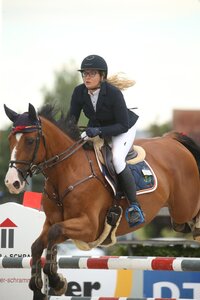 Im oberschwäbischen Bad Schussenried siegte Stefanie Paul am Samstag in einer Zeitspringprüfung der Klasse S* im Sattel des neunjährigen DSP-Wallach Levino. Der Levisonn-Sohn sammelte unter der Amazone seit letzter Saison bereits einige S-Platzierungen, auch auf Zwei-Sterne-Niveau. Das Paar überwand den Parcours fehlerfrei in einer flotten Zeit von 62,85 Sekunden und setzte sich so vor Springprofi Edwin Schmuck, der sich mit seinen Pferden Contagobet und Quintana auf Platz zwei und drei einreihte. Für Rolf Hartmann war die abschließende Barrierespringprüfung ein Heimsieg. Im letzten Umlauf blieb der Ingoldinger mit seinem Oldenburger-Hengst Chaccimo als einziger Reiter ohne Fehler. Platz zwei sicherten sich Mario Walter und der achtjährige Quattro´s Cadeaux. Auch Stefanie Paul und Levino überzeugten erneut: Nach zwei fehlerfreien Umläufen und etwas Pech im letzten Durchgang landete das Paar auf dem dritten Rang.