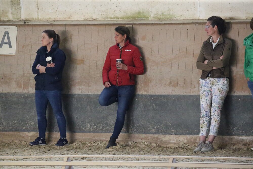 Nach einem Geburtstagsständchen für Landestrainer Rudi Brügge und einführenden Begrüßungsworten durch Heinz Bürk begann der zweitägige Landeskaderlehrgang in Neubulach. Dieses Mal kamen die baden-württembergischen Ponykinder in den Genuss eines prominenten Gastes und das war keine geringere als die Bundestrainerin der Ponyreiter, Caroline Roost. Die Aufregung der Kinder war von der ersten Sekunde an zu spüren. Diese versuchte Caroline Roost ihnen gleich zu nehmen. „Ich erwarte gute Laune, geputzte Stiefel, Trensen und Ponys sowie keine Shows von Euch. Ihr sollt mir klar eure Probleme schildern, damit ich euch in den zwei Tagen weiterhelfen und euch Tipps zur Verbesserung geben kann. Wenn ihr eine Show abzieht und eure Probleme versucht zu verstecken, hilft das euch und mir nichts.“ – so beschrieb Caroline Roost zugleich ganz klar ihre Erwartungshaltung. Diese Worte zogen sich wie ein roter Faden durch den gesamten Lehrgang. So erkannte die sympathische Bundestrainerin die spezifischen Probleme der Paare, an welchen sie konsequent sowie mit einer gewissen Portion Humor arbeitete. Roost legte ebenso großen Wert auf korrekte Hufschlagfiguren und einen guten Sitz. „Beispielsweise sind zu große oder eierförmige Volten ein absolutes No-Go“, mahnte die Bundestrainerin. Zur Verdeutlichung der Wichtigkeit von Hufschlagfiguren holte sie alle Lehrgangsteilnehmer in die Halle, wo die Buchstaben und spezifische Linien, wie die Viertelslinie, genau besprochen wurden. „Auf dem Turnier solltet ihr vor jeder Prüfung das Viereck begutachten und euch markante Punkte durch Bäume, Blumentöpfe oder auch durch Platzierung eurer Eltern merken“, beschrieb Roost ihren Tipp an die Ponykinder. Die Lehrgangsteilnehmer selbst waren von den Trainingseinheiten sichtlich begeistert. „Frau Roost hat sofort die Probleme erkannt und wusste, wie man diese verbessert“, beschreibt Leni Wächter ihre Erkenntnisse aus dem Training. Auch Hannah Käppler begeisterte, dass die Bundestrainerin immer das richtige Gleichgewicht finde und neben Kritik zugleich auch Lob ausspreche. Apropos Konsequenz: Für Caroline Roost sind die Ecken ein zentraler Punkt in der Vorbereitung von Lektionen. Aus diesem Grund stellte sie in jede Ecke der Halle Kegel und wie soll es anders sein, sie führten zu einem wirklich tieferen Ausreiten der Ecken und zugleich zu einer verbesserten Vorbereitung der Lektionen.