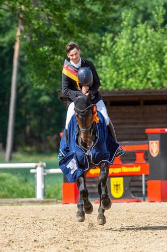 Nach Dressur und Springen rangierten Linus Weiß und sein Astrello schon auf einem tollen zweiten Platz. Wer Astrello kennt, weiß, dass er im Parcours immer mal wieder einen Abwurf produzieren kann. Doch so war es heute nicht! In einem spannenden Springen behielten die Beiden die Nerven und machten den „Sack“ zu. Am Ende blieben sie fehlerlos und in der Zeit. Das bedeutete die Goldmedaille bei den Jungen Reitern mit 30 Minuspunkten. Hinter Linus Weiß würfelte sich das Ranking noch einmal ordentlich durch. So musste der gestrige Führende Linus Richter drei Abwürfe in Kauf nehmen und fiel im Gesamtranking auf Platz fünf zurück. Die Silbermedaille sicherte sich Konstantin Harting, welcher nach Dressur und Gelände schon auf dem dritten Platz befand. Paula Reinstorf durfte sich nach einer beeindruckenden Aufholjagd über die Bronzemedaille freuen.