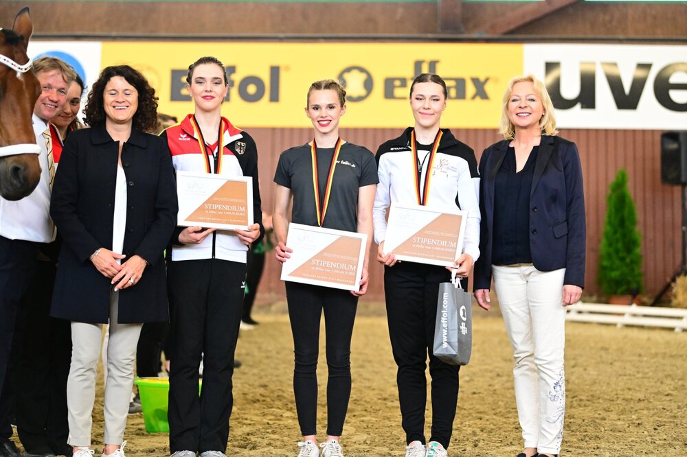 Beim Preis der Besten waren auch die Nachwuchsvoltigierer am Start. Ein äußerst wichtiger Termin für die Nachwuchsvoltigierer von Deutschland, da gleichzeitig auch für die EM im ungarischen Kasposvar gesichtet wurde. Hier findet auch erstmals eine U21-Europameisterschaft statt. Besonders in diesem Bereich, der Pilotprüfung U21 Einzel, konnte Baden-Württemberg überzeugen. Alice Layher vom RC Güglingen sicherte sich die Silbermedaille. Dabei sah sie ein Richter sogar ganz vorne. Direkt nach dem Preis der Besten kam dann die tolle Nachricht: Alice Layher darf zur EM nach Ungarn fahren! Das ist wirklich ein doppelter Grund zum Feiern. Die Goldmedaille ging an Diana Harwardt und Bronze sicherte sich Mona Pavetic. In dieser Prüfung startete mit Sofie Arnold noch eine weitere Baden-Württembergerin. Sie rangierte auf Platz zwölf. Bei den Junioren im Einzel war ein weiteres Nachwuchstalent vom RC Güglingen am Start. Leni Allinger platzierte sich hier auf dem elften Platz. Im Preis der Zukunft überzeugte Lara Andrew und rangierte auf einem guten neunten Platz. Die Goldmedaille ging nach Mecklenburg-Vorpommern an Amari Santamaria Diaz.