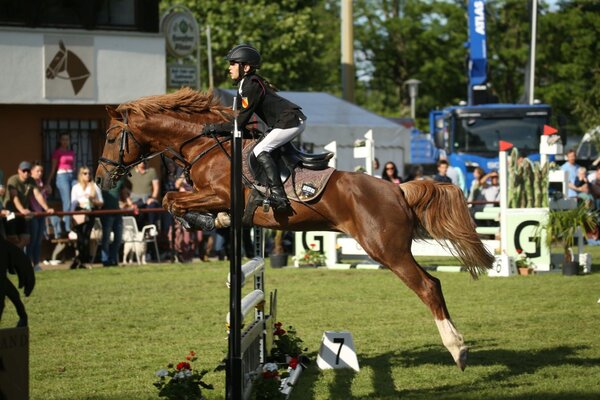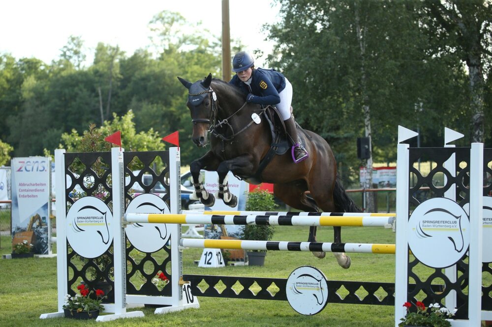 Nachdem bekannte Gesichter des Ländles bereits in Schwendi, auf dem Birkhof sowie in Herbertingen bei den Qualifikationen des Landesjugendcups fleißig Punkte sammelten, machten nun im badischen Weingarten weitere Nachwuchstalente auf sich aufmerksam. Über den Sieg in der großen Tour, einer Stilspringprüfung der Klasse L mit Stechen, durfte sich Wolke-Marie Dähmlow freuen. Ins Stechen zogen neben der jungen Dame aus Rottweil drei weitere Teilnehmerinnen ein, die allesamt mit fehlerfreien Runden im Stechparcours gut vorlegten. Doch Dähmlow rollte das Feld nochmals von hinten auf. Mit einer rhythmischen und schnellen Runde im Sattel der Württemberger-Stute Lyra Sp (Z.: Hartmut Spitzer) verwies Wolke-Marie Dähmlow ihre Konkurrentin Ann-Sophie Mayr mit Geronimo Marc auf Platz zwei. Die beste Stilnote im Umlauf erhielt die drittplatzierte Marie-Claire Olm. Das Richtergremium bestehend aus Nadin Henke und Peter Illert bewertete den Ritt der jungen Amazone und ihrer 13-jährigen Chambalaia mit einer Wertnote von 8,2. Stilistisch überzeugte Olm diese Saison schon mehrmals und so feierte sie erst kürzlich beim großen Springturnier in Tübingen ihren ersten L-Sieg (ebenfalls in einer Stilprüfung). Den vierten Platz sicherte sich Josie Jakob, die den fuchsfarbenen BWP-Wallach Ocendo gesattelt hatte. Auch bei den „Kleinen“ hieß es: Die Letzten werden die Ersten sein. So sicherte sich Frieda Grüber mit ihrem motivierten Ponyhengst Boreo und einer Wertnote von 7,8 den Sieg im Stil-A*. Tara Gehring setzte sich im Sattel ihrer zwölfjährigen Ponystute Kiara vor Chiara Hannelies König und Araconella. Mitte Juni wird in Ladenburg die nächste Qualifikation ausgetragen, dann allerdings im Dressurviereck. (lb/Fotos: D.Matthaes)