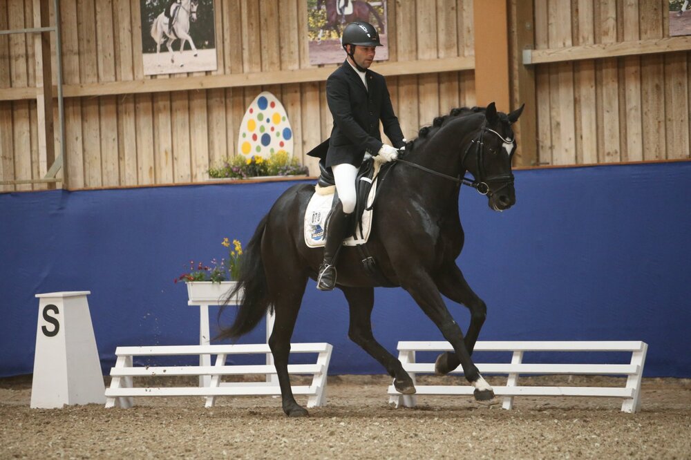 Die Youngster überzeugten in der Dressurprüfung Klasse S* in Ötigheim. Timo Kemmerer gewann mit seinem erst 8-jährigen, selbst gezogenen und ausgebildeten, Wallach Dantes Zazou v. Dante Weltino. 71,86 % standen am Schluss auf der Tafel. Das Paar konnte sich im Laufe der Aufgabe zusehends steigern, wobei die Richter besonders die Galopptour gut bewerteten. Zweite wurde Michele Schulmerig mit der 11-jährigen Oldenburger Stute Favignana (70,04%). Die Florencio I-Tochter zeigte wieder zuverlässig ihr Können, in den vergangenen zwei Monaten war sie in der schweren Klasse bereits viermal unter den Top drei platziert. Platz drei ging an die Legelshursterin Claudia Kaiser mit ihrem gerade mal sieben Jahre jungen Sweetheart v. Sezuan (67,85). Für das Paar war es der erste Erfolg auf diesem Niveau. Dr. Dietrich Plewa erhielt für seine Vorstellung des 8-jährigen Hannoveraners Foster v. For Romance 67,18%: Platz vier. Der Hengst zeigte bereits eine solide Trab- und Galopptour, lediglich den Schritt fanden die Richter teilweise nur befriedigend. (mj)