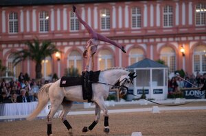 Auch im Viereck dominierte ein bekanntes Pferd der Landeszucht: First Romance gewann unter Dorothee Schneider mit knapp 75 Prozent den Grand Prix Special der 4*-Tour. Bereits am Sonntag war der zwölfjährige Württemberger aus der Zucht von Carolin Weber im Grand Prix siegreich gewesen. Im abschließenden Finale ließen First Romance und die Olympionikin aus Framersheim Isabell Werth und den zehnjährigen Hannoveraner Superb auf Rang zwei sowie Nicole Wego-Engelmeyer und die San Amour I-Tochter Saphira Royal auf Rang drei hinter sich. (akb)