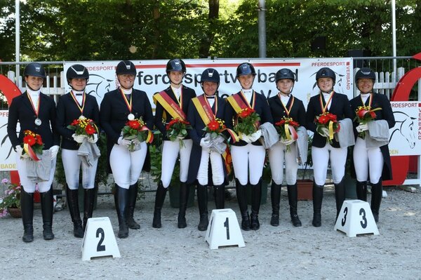 Louisa Leonhard heißt die neue südbadische Meisterin der Junioren. Mit ihrem Hannoveraner-Wallach Looks like riccioli zeigte sie auch im Finale eine sichere Vorstellung. Über Nacht hatte sie nach dem Sieg in der ersten Wertungsprüfung die Führung inne und musste am Sonntagmorgen direkt als Erste ins Viereck. Doch die Nachwuchsreiterin aus Lahr-Reichenbach behielt die Nerven und ließ sich auch den Sieg in der L**-Dressur nicht nehmen. Kaya Wehrle holte sich die Silbermedaille, ein dritter Platz in der Finalprüfung reichte aus. Mit ihrem erst sechsjährigen Hannoveraner Fürstenprinz ritt sie auf Platz drei hinter Michelle Eggensperger, die in der Meisterschaftswertung Bronze gewann.