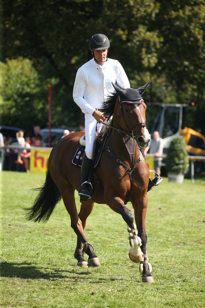 Er startet für die Immenhöfe in Donaueschingen, trainiert aber mit seiner Frau Steffi zusammen in Herbolzheim bei Freiburg – ein waschechter Südbadener also: Jetzt peilt Michael Herhalt seinen ersten südbadischen Meistertitel an. Um in Führung zu gehen, genügte dem Profi fürs Erste ein Sieg in einem M-Springen auf seinem Nachwuchspferd Ascona. Darin verwies er Nicole Hirzer auf Rang zwei; sie sitzt im Sattel der Holsteiner Stute La Belle, die unter Nicole Hirzers Bruder Tobias Schwarz schon Große Preise gewonnen hat. Auf Rang drei landete der Ichenheimer Lokalmatador Maximilian Benz mit seiner Quinta – das ist auch die Reihenfolge in der Meisterschaft nach der ersten Wertung.